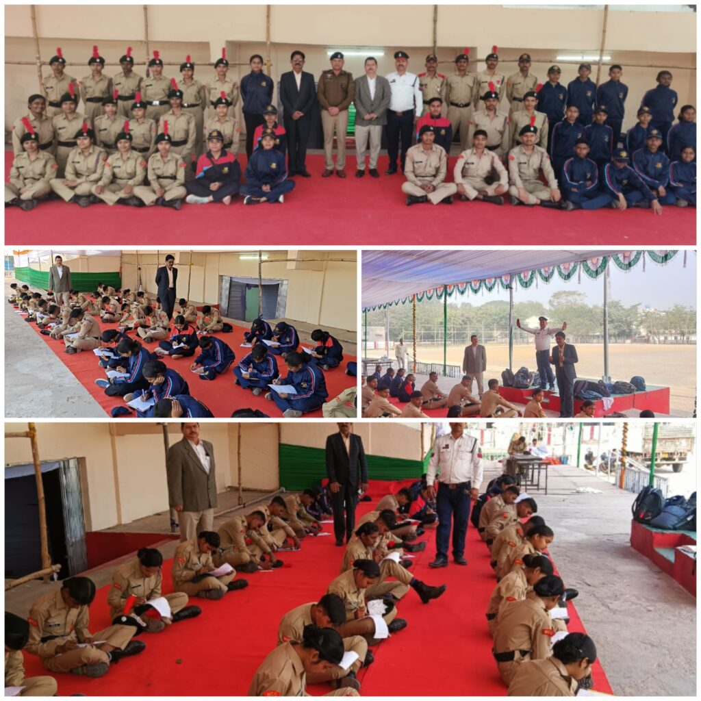 Md-Junaid Khan बिलासपुर। यातायात माह 2026 अंतर्गत एनसीसी के विद्यार्थियों के बीच आयोजित हुई यातायात आधारित सामान्य ज्ञान परीक्षा। 1