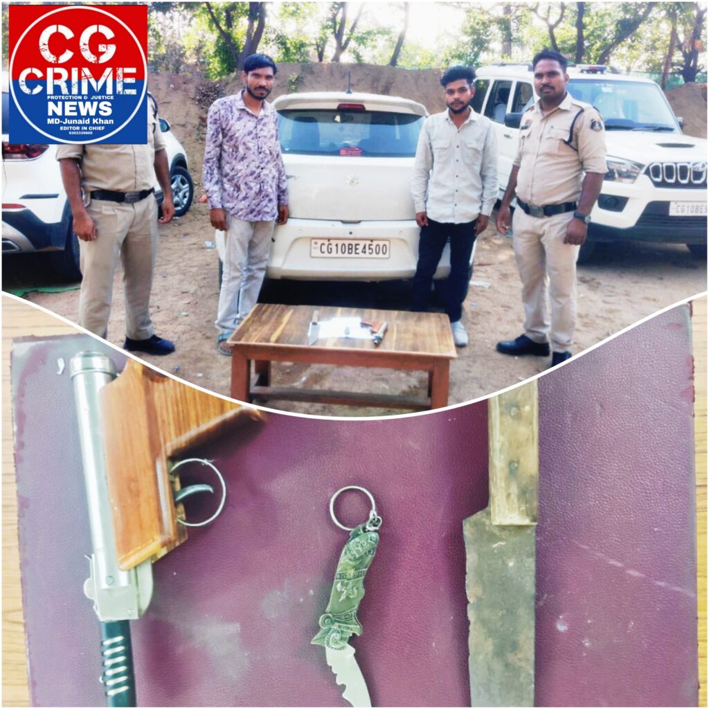 MD-Junaid Khan बिलासपुर। जिले के रतनपुर थाना क्षेत्र में धारदार हथियार और कट्टा लेकर राहगीरों को डरा-धमका रहे दो आरोपियों