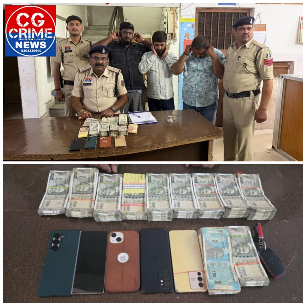MD-Junaid Khan बिलासपुर। जिले की सिरगिट्टी थाना क्षेत्र में कार में बैठ कर आईपीएल मैचों पर ऑनलाइन सट्टा खिलाते तीन