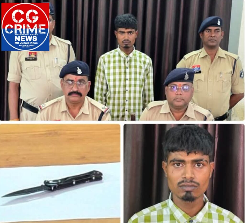 MD-Junaid Khan जांजगीर चांपा। कोतवाली पुलिस द्वारा धारदार हथियार लेकर आने जाने वालो को भयाक्रांत करने वाला आरोपी को गिरफ्तार