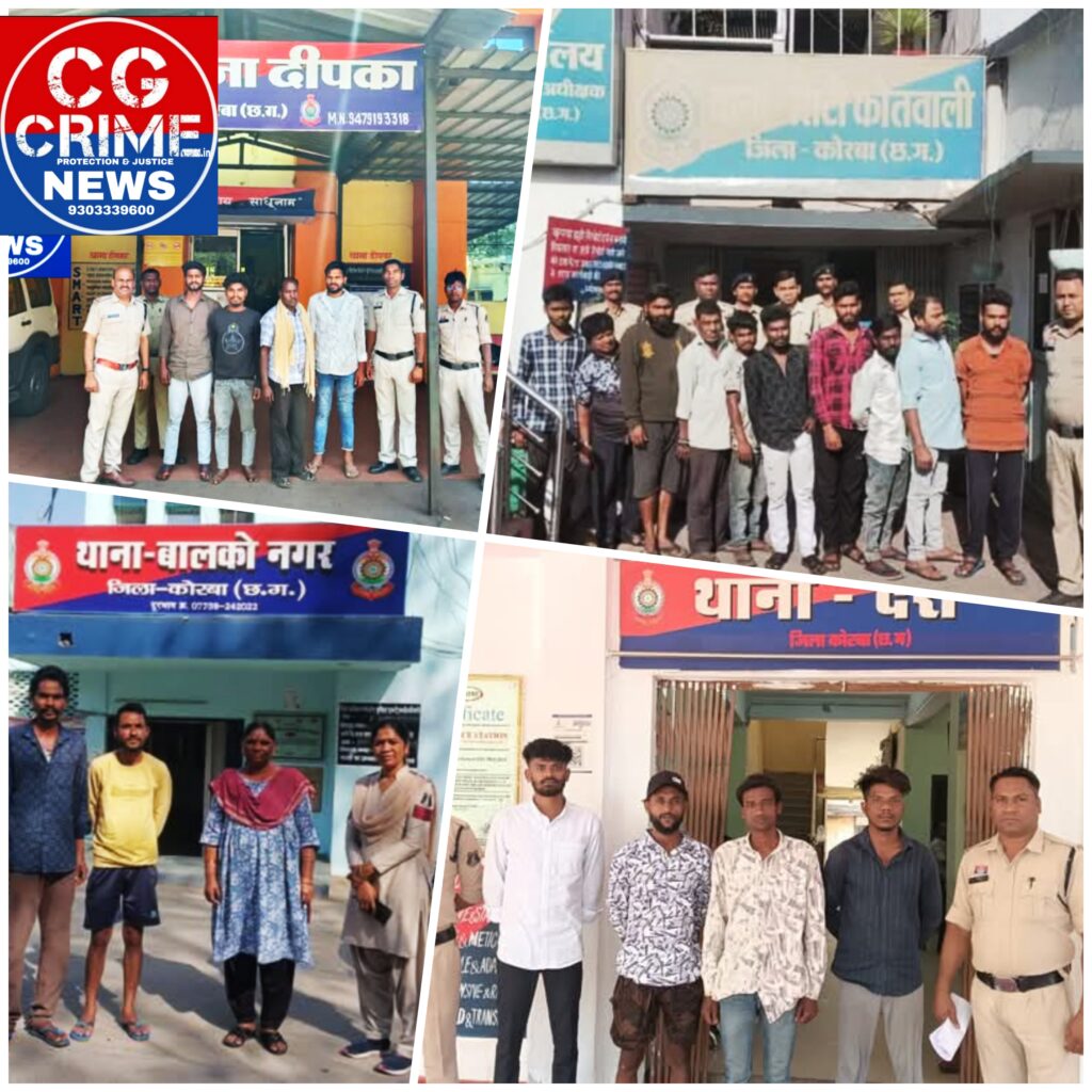 कोरबा पुलिस की अपराधियों एवं अवैध गतिविधियों के विरुद्ध ताबड़तोड़ कार्यवाही,