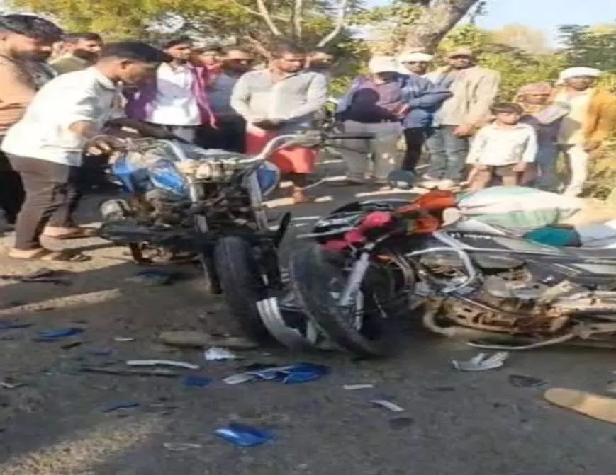 कवर्धा। कबीरधाम जिले में मध्यप्रदेश–छत्तीसगढ़ सीमा से लगे इलाके में एक दर्दनाक सड़क हादसा सामने आया है। सागोना गांव के पास दो बाइकों की आमने-सामने भिड़ंत हो गई। टक्कर इतनी जबरदस्त थी कि दोनों बाइकों के परखच्चे उड़ गए। इस हादसे में मध्यप्रदेश निवासी एक बुजुर्ग व्यक्ति की मौके पर ही मौत हो गई, जबकि तीन अन्य लोग गंभीर रूप से घायल हो गए। घायलों में से दो की हालत नाजुक बताई जा रही है। जानकारी के अनुसार, कवर्धा जिले के लोखान गांव निवासी संतराम और स्वात राम एक ही बाइक