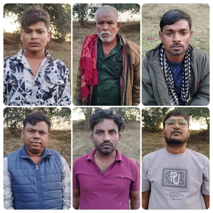बलौदा बाजार। जिले के थाना सिमगा एवं साइबर सेल की संयुक्त पुलिस टीम द्वारा ग्राम संजारी नवागांव में जुआ खेलते हुए 06 लोगों को रंगे हाथों पकड़ा गया। पकड़े गए आरोपियों में 1. अजय धृतलहरे उम्र 19 वर्ष निवासी ग्राम लिमतरा थाना सिमगा 2. रामेश्वर वर्मा उम्र 35 वर्ष निवासी ग्राम खैरा थाना नांदघाट जिला बेमेतरा 3. ऐस कुमार निषाद उम्र 20 वर्ष निवासी ग्राम चौरेंगा थाना सिमगा 4. कांशीराम गेण्डरे उम्र 60 वर्ष निवासी ग्राम मांढर खुर्द थाना सिमगा 5. भीमसेन उम्र 39 वर्ष निवासी बजरंग चौक नांदघाट जिला बेमेतरा 6. ओंकार कुंजाम उम्र 42 वर्ष निवासी नांदघाट जिला बेमेतरा। आरोपी जुआरियों से नगदी रकम ₹1,24,180 एवं 52 पत्ती ताश जप्त कर जुआ प्रतिषेध अधिनियम के तहत कार्यवाही की है।