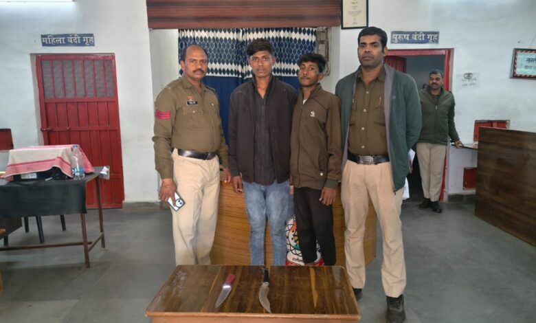 प्राप्त जानकारी के अनुसार 24 दिसंबर 2025 को थाना रतनपुर को फोन के माध्यम से सूचना मिली कि एक व्यक्ति मेलाभाठा रतनपुर के पास और दूसरा व्यक्ति खण्डोबा मंदिर रतनपुर के पास आम जगहों पर चाकू दिखाकर राहगीरों को डरा-धमका रहा है। सूचना मिलते ही वरिष्ठ अधिकारियों को अवगत कर उनके निर्देश पर पुलिस टीम गठित की गई। पुलिस टीम ने त्वरित कार्यवाही करते हुए मेलाभाठा क्षेत्र से गणेश कुमार सूर्यवंशी, उम्र 18 वर्ष और खण्डोबा मंदिर के पास से आकाश यादव उर्फ बुगलू, उम्र 20 वर्ष को घेराबंदी कर पकड़ा। दोनों आरोपियों के कब्जे से धारदार चाकू बरामद किए गए। पुलिस ने आरोपियों के खिलाफ आर्म्स एक्ट के तहत कार्यवाही करते हुए उन्हें न्यायिक रिमांड पर जेल भेज दिया है।