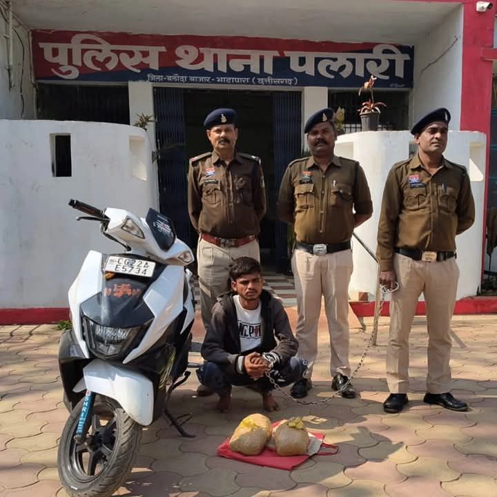 बलौदा बाजार। जिले के साइबर सेल एवं थाना पलारी पुलिस द्वारा अवैध मादक पदार्थ गांजा की तस्करी एवं बिक्री करने वाले विधि से संघर्षरत एक बालक सहित 02 आरोपियों को गिरफ्तार किया है। प्राप्त जानकारी के अनुसार आरोपियों द्वारा स्कूटी के माध्यम से अवैध मादक पदार्थ गांजा की तस्करी एवं बिक्री की जा रही थी। आरोपियों को ग्राम अमेरा से छेरकापुर जाने वाले मार्ग में नाकाबंदी कर अवैध मादक पदार्थ गांजा सहित पकड़ा गया। कार्यवाही में आरोपियों से ₹16,000 कीमत मूल्य का 2.004 किलोग्राम गांजा जप्त कर, साथ ही अवैध मादक पदार्थ गांजा तस्करी में प्रयुक्त एक स्कूटी क्र. CG22 AE5734 भी जप्त किया गया।