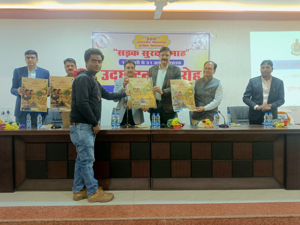 बिलासपुर। आज दिनांक 01.01.2026 को राष्ट्रीय सड़क सुरक्षा माह 2026 का विधिवत शुभारंभ स्थानीय चेतना हॉल में बिलासपुर संभागायुक्त श्री सुनील जैन, तथा पुलिस महानिरीक्षक श्री संजीव शुक्ला, कलेक्टर बिलासपुर श्री संजय अग्रवाल, वरिष्ठ पुलिस अधीक्षक बिलासपुर श्री रजनेश सिंह, सीईओ जिला पंचायत श्री संदीप अग्रवाल आयुक्त नपानि श्री प्रकाश सर्वे, की गरिमामयी उपस्थिति में दीप प्रज्जवलित कर किया गया।