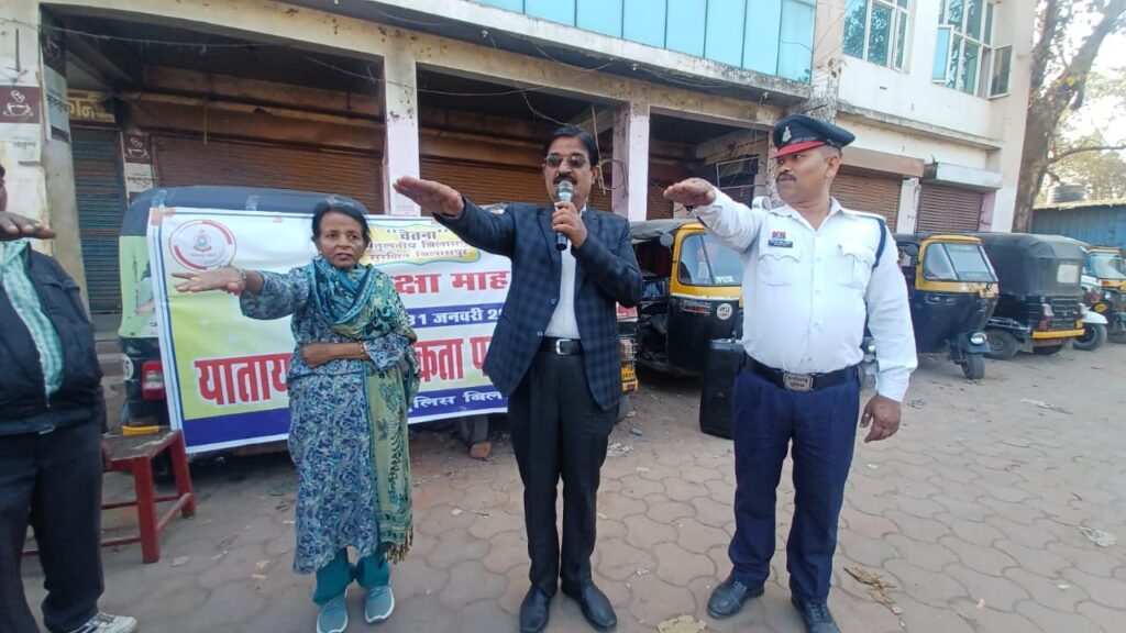 कार्यक्रम में महाविद्यालय की ओर से प्रोफेसर आभा तिवारी, किरण दुबे सहित बड़ी संख्या में प्राध्यापक गण एवं विद्यार्थी उपस्थित रहे। इसी प्रकार आज ही रेलवे स्टेशन बिलासपुर में ऑटो चालकों को सुरक्षित यातायात संबंधी प्रशिक्षण दिया गया। ऑटो में वाहन चालक के अगल-बगल सवारी न बैठने, नशा कर वहान न चलने, वहान चलते हमेशा मोबाइल से दूरी बनाए रखने एवं सभी से हमेशा मधुर व्यवहार करने,तथा सड़क दुर्घटना में घायलों को तत्काल अस्पताल ले जाने हेतु समझाइए दी गई ।