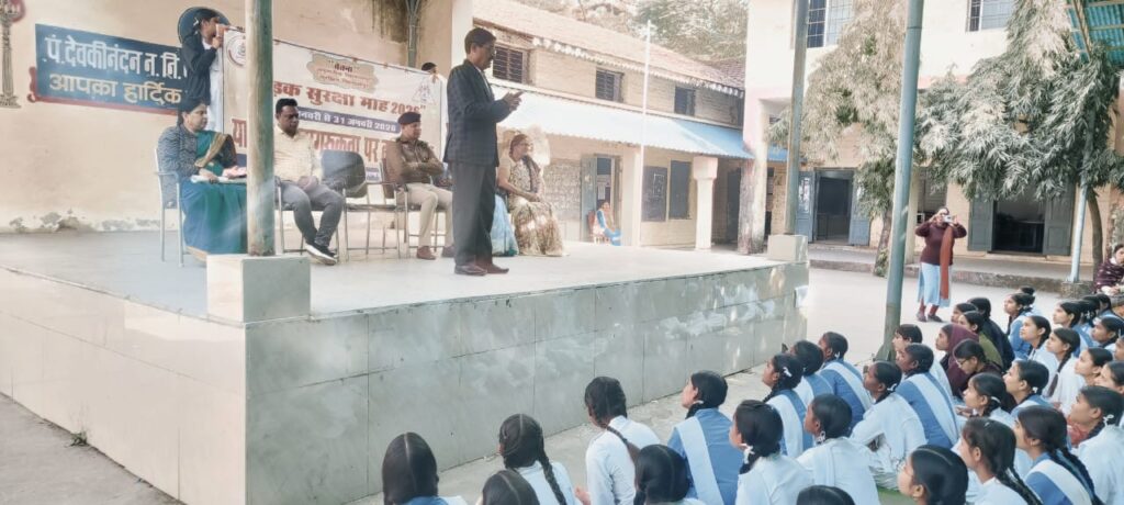 उन्होंने इसके कारण एवं निवारण बताते हुए सदैव सावधान रहने की बात कहीl कार्यक्रम में जीव धरनी फाउंडेशन के श्री विकास वर्मा सड़क सुरक्षा समिति की समिति विद्या गोवर्धन एवं उषा भांगे तथा संस्था की प्राचार्य श्रीमती कल्पना दुबे एवं बड़ी संख्या में अध्यापक शिक्षिकाएं तथा लगभग 400 की संख्या में छात्राएं उपस्थित थी।