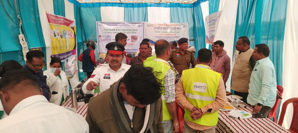 इस दौरान इन्हें यातायात नियमों के पालन हेतु शपथ कराई गई।इसी प्रकार आज के स्वास्थ्य शिविर में उपस्थित हुए वाहन चालक एवं परिचालकों का शुगर बीपी सहित आंखों की जांच की गई जिसका लाभ 900 से अधिक वाहन चालकों ने लिया एवं जांच में पाई गई स्वास्थ्यगत समस्याओं के उपचार सहित देखभाल की जानकारी भी दी गई।
