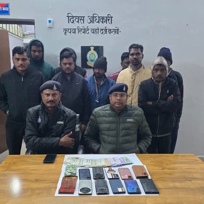 गौरेला-पेंड्रा-मरवाही। जिले के मरवाही थाना क्षेत्र अंतर्गत जुआ गतिविधियों के विरुद्ध प्रभावी कार्यवाही करते हुए पुलिस द्वारा एक बड़ी सफलता प्राप्त की गई है। पुलिस ने छापा मार कार्यवाही कर 11 जुआरियों को रंगे हाथों गिरफ्तार करते हुए उनके कब्जे से नकद राशि, मोटर साइकिल एवं मोबाइल फोन जप्त किए हैं। प्रकरण में अपराध क्रमांक 0/2026, धारा 03(2) छत्तीसगढ़ जुआ प्रतिषेध अधिनियम, 2022 के अंतर्गत अपराध पंजीबद्ध किया गया है।