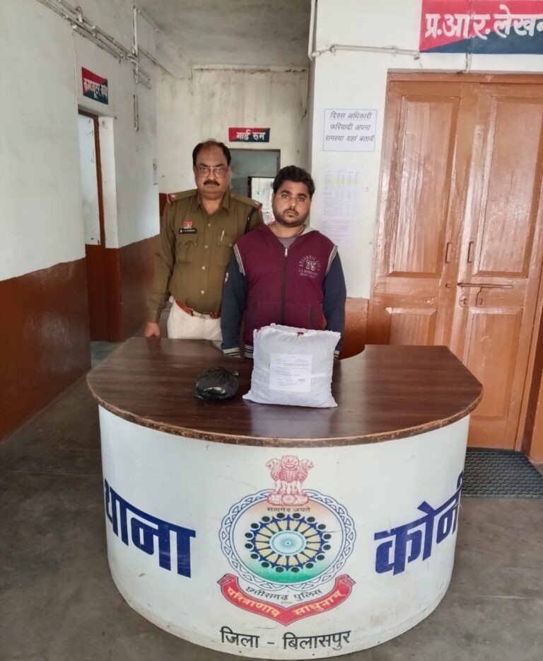 बिलासपुर। जिले के कोनी पुलिस द्वारा अवैध नशीली मादक पदार्थ की बिक्री करने वाले आरोपी को गिरफ्तार किया है। प्राप्त जानकारी के अनुसार मुखबिर की सूचना पर ग्राम पोसरा निवासी रोशन उर्फ छोटू तिवारी को 2 किलोग्राम गांजा और एक मोबाइल फोन के साथ गिरफ्तार किया है। मुखबिर सूचना पर कार्यवाही करते हुए घेराबंदी कर आरोपी पकड़ा गया जिसके के कब्जे से 2 किलोग्राम गांजा और एक मोबाइल फोन जप्त किया गया जिसकी कुल कीमत करीब 28 हजार रुपये आंकी गई है।पुलिस ने NDPS एक्ट के तहत मामला दर्ज कर आरोपी को गिरफ्तार कर न्यायिक रिमांड जेल भेज दिया है।