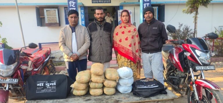 बिलासपुर। जिले के कोटा थाना चौकी बेलगहना पुलिस द्वारा अवैध मादक पदार्थ तस्करी के विरुद्ध कार्यवाही करते हुए 13 किलोग्राम गांजा के साथ तीन आरोपी समेत एक महिला को गिरफ्तार किया है। पकड़े गए आरोपियों के कब्जे से गांजा, दो मोटरसाइकिल, चार मोबाइल व नकद समेत कुल 8 लाख 41 हजार 250 रुपये की संपत्ति जब्त की गई है। प्राप्त जानकारी के अनुसार वरिष्ठ अधिकारियों के निर्देश पर की गई इस कार्यवाही में मुख्य आरोपी उड़ीसा से गांजा लाकर आसपास के क्षेत्रों में बिक्री करता था।