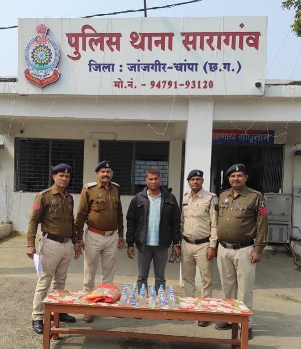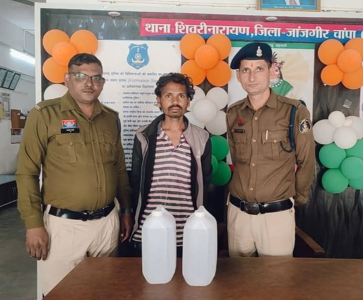 जांजगीर चांपा। पुलिस अधीक्षक जांजगीर चांपा श्री विजय कुमार पाण्डेय (IPS) के निर्देशन में जिले में अवैध शराब बिक्री पर अंकुश लाने के लिए जिला पुलिस जांजगीर द्वारा लगातार कार्यवाही की जा रही है। इसी क्रम में थाना सारागांव एवं शिवरीनारायण पुलिस द्वारा दो आरोपियों को शराब के साथ गिरफ्तार किया है। पुलिस द्वारा रेड कार्यवाही कर आरोपी हरनारायण कर्ष के कब्जे से 36 पाव देशी प्लेन शराब। एवं थाना शिवरीनारायण पुलिस द्वारा आरोपी दीनदयाल साहू के कब्जे से 10 लीटर अवैध कच्ची महुआ शराब जुमला कीमती 4880/₹ बरामद किया। जाकर आरोपियों के विरुद्ध आबकारी एक्ट के तहत कार्यवाही कर न्यायिक रिमांड पर भेजा गया।