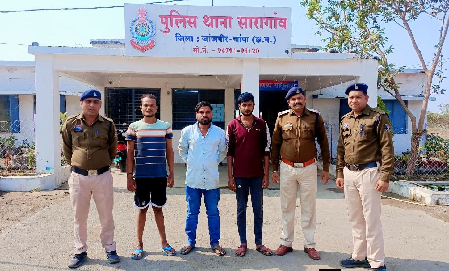 जांजगीर चांपा। जिले सारागांव थाना क्षेत्र में लंबे समय से फरार चल रहे 3 स्थाई वारंटी को पकड़ने में सारागांव पुलिस को बड़ी सफलता मिली हासिल हुई है। पुलिस अधीक्षक श्री विजय कुमार पाण्डेय IPS के निर्देश पर जिले में फरार वारंटियों की धरपकड़ हेतु सारागांव पुलिस द्वारा अभियान चलाया गया। अभियान के तहत पुलिस को बड़ी सफलता प्राप्त हुई है, जिसमें 03 स्थाई वारंट के आरोपी को गिरफ्तार किया गया।