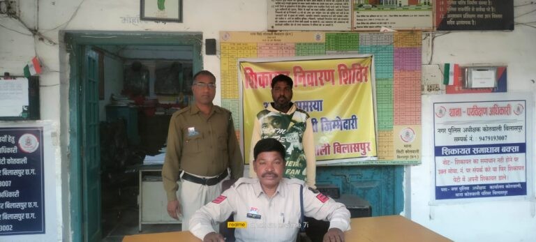बिलासपुर। जिले के थाना सिटी कोतवाली पुलिस द्वारा दयालबंद गुरूनानक स्कूल के पास आम सड़क पर धारदार चाकू लहराकर लोगों को डराने वाले आरोपी को गिरफ्तार कर लिया है। आरोपी के कब्जे से एक धारदार चाकू जब्त किया गया है। प्राप्त जानकारी के अनुसार पुलिस को मुखबिर से सूचना मिली की दयालबंद गुरूनानक स्कूल के पास एक युवक धारदार चाकू लहराकर लोगों को डरा धमका रहा है। थाना प्रभारी द्वारा वरिष्ठ अधिकारियों अवगत कराया। जिस पर वरिष्ठ अधिकारियों के निर्देश पर तत्काल कार्यवाही करते हुए दबिश दी एवं मौके से आरोपी संजय सोनकर को गिरफ्तार कर चाकू बरामद कर आरोपी के विरुद्ध धारा 25 व 27 आर्म्स एक्ट के तहत कार्यवाही करते हुए अपराध दर्ज कर न्यायिक रिमांड पर जेल भेज दिया है।