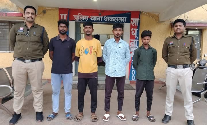 जांजगीर चांपा। जिले के अकलतरा पुलिस द्वारा घर अंदर घुसकर मारपीट, गाली गलौच करने के मामले में फरार चल रहे 04 आरोपियों को पकड़ने में थाना अकलतरा पुलिस को मिली बड़ी सफलता हासिल हुई है, आरोपियों द्वारा नए वर्ष की रात में मारपीट व महिलाओं से अभद्रता कर हो गए थे फरार। पुलिस ने चारों आरोपियों को गिरफ्तार कर न्यायिक रिमांड में भेज दिया है।
