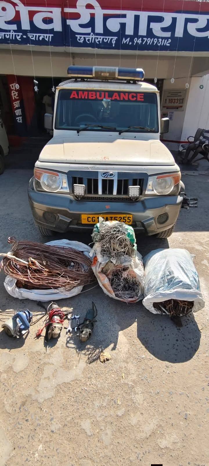 जांजगीर चाम्पा। जिला पुलिस की सक्रियता से संगठित ट्रांसफार्मर, कॉपर एवं एल्मुनियम केवल चोरी अंतर्जिला गिरोह का हुआ पर्दाफाश करते हुए, अलग-अलग जगहों से गिरोह के 06 सदस्यीय आरोपियों को पकड़ने में बड़ी सफलता हासिल हुई है। बोलेरो वाहन को एम्बुलेस के रूप तैयार कर पुलिस एवं आम जन को भ्रमित करने चोरी का माल का किया जाता था परिवहना। आरोपियों के कब्जे से चोरी की गई कॉपर, एल्युमिनियम ट्रांसफार्मर लोहे का एंगल, 04 नग मोबाइल एवं वाहन छोटा हाथी क्रमांक CG-10 AS-5452, बोलेरो एंबुलेंस क्रमांक CG-10 AT-5255, वारदात में प्रयुक्त कटर मशीन ब्लेड, पाना पेचिस बरामद जुमला कीमती 17,30,000₹ (सत्रह लाख तीस हजार रूपये)