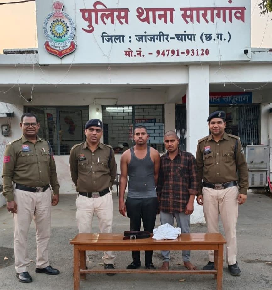 जांजगीर चांपा। जिले के सारागांव थाना क्षेत्र में बारात डीजे बाजा में नाचने की बात को लेकर चाकू से प्राण घातक हमला करने वाला 02 आरोपियों को सारागांव पुलिस ने गिरफ्तार कर लिया है। प्राप्त जानकारी के अनुसार आहत गौरव बरेठ अपने दोस्तों के साथ दिनांक 10/02/2026 को शाम में बाराती में ग्राम अफरीद गये थे जहां ग्राम बोरसी पामगढ़ से एक और बाराती आए थे उसी बाराती के बीच आहत नाचने की बात को लेकर, बोरसी बाराती के लोग नाचने से मना किये तो नहीं माने इसी बात को लेकर आरोपियों द्वारा अश्लील गाली गलौच करते हुए जान से मारने की नीयत से चाकू से गौरव बरेठ एवं उसके साथी सागर बरेठ को हमला कर दिए जिसे चोट होने से ईलाज हेतु अस्पताल बिलासपुर ले जाकर भर्ती किये है।