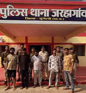 Md-Junaid Khanमुंगेली। जिला पुलिस द्वारा नशे के अवैध कारोबार करने वालों के विरूद्ध कार्यवाही करते हुए जरहागांव पुलिस द्वारा ब्राउन शुगर के साथ 05 आरोपी को गिरफ्तार किया है, पकड़े गए आरोपियों के कब्जे से 53.51 ग्राम ब्राउन शुगर किमत करीबन 265000 जप्त कर न्यायिक रिमाण्ड पर भेज दिया है। दिनांक 01.03.2026 को जरिये मुखबीर सूचना प्राप्त हुआ कि ग्राम जरहागांव के समीर कश्यप अवैध रूप से ब्राउन शुगर बाहर से लाकर बिक्री करने के लिए अपने अन्य दोस्तो के साथ मिलकर जरहागांव शमशान घाट के पास इकठ्ठा हो रहे है ,सूचना पर जिले की साइबर सेल एवं थाना जरहागांव पुलिस द्वारा संयुक्त टीम गठित कर विधिसम्मत कार्यवाही हेतू रवाना किया गया।सूचना तस्दीकी हेतू जरहागांव शमशान घाट मे घेराबंदी कर रेड कार्यवाही कर मुखबीर के बताये हुलिया अनुरूप 05 व्यक्तियों को हिरासत मे लेकर पुछताछ किया गया जो संदेही अपना नाम (1) समीर कश्यप पिता सुखनंदन प्रसाद उम्र 24 वर्ष निवासी ठाकुरदेव पारा जरहागांव (2) सियाराम कश्यप पिता लीलाराम उम्र 25 वर्ष निवासी ठाकुरदेव पारा जरहागांव (3) विरेन्द्र श्रीवास पिता विश्राम उम्र 34 वर्ष निवासी डीलवापारा जरहागांव (4) लोकेश उर्फ लक्की कश्यप पिता शिवकुमार उम्र 35 वर्ष निवासी महामाया पारा जरहागांव (5) रविशंकर कश्यप उर्फ बब्बा पिता भरत लाल उम्र 27 वर्ष निवासी छतौना थाना जरहागांव का रहने वाले बताये जिनका मौके मे उपस्थित गवाहों के समक्ष विधिवत तलाशी लिया गया,