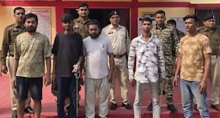 ———————————————————–गिरफ्तार आरोपियों का नाम1. समीर कश्यप पिता सुखनंदन प्रसाद उम्र 24 वर्ष निवासी ठाकुरदेव पारा जरहागांव2. सियाराम कश्यप पिता लीलाराम उम्र 25 वर्ष निवासी ठाकुरदेव पारा जरहागांव3. विरेन्द्र श्रीवास पिता विश्राम उम्र 34 वर्ष निवासी डीलवापारा जरहागांव4. लोकेश उर्फ लक्की कश्यप पिता शिवकुमार उम्र 35 वर्ष निवासी महामाया पारा जरहागांव5. रविशंकर कश्यप उर्फ बब्बा पिता भरत लाल उम्र 27 वर्ष निवासी छतौना थाना जरहागांव———————————————————–जप्तीः-6. ब्राउन शुगर, जुमला वजनी 53.51 ग्राम किमती करीबन 265000 रूपये7. 06 नग मोबाईल सेट किमती करीबन 50000 रूपये8. एक मो0सा0 होण्डा साईन क्रमांक सीजी 28 पी 1199 नीले रंग का किमती करीबन 65000 रूपये ,9. 01 नग इलेक्ट्रानिक तौल मशीन किमती करीबन 1000 रूपयेकुल जुमला कीमती करीबन 381000 रूपये