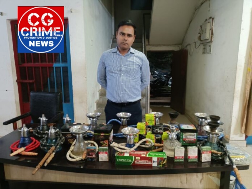 सूचना के आधार पर पुलिस टीम ने होटल में घेराबंदी कर छापा मार कार्यवाही की, छापेमारी के दौरान पुलिस ने आरोपी सिद्धार्थ गुप्ता (39 वर्ष) निवासी होटल शिवा इन, बोदरी को पकड़ा। जिसके कब्जे से 12 हुक्का पॉट, 12 स्टैंड, 12 चिलम, 12 पाइप, कोयला, कोको जेल के पैकेट, कोल हीटर, तंबाकू युक्त फ्लेवर के डिब्बे और 5 हजार रुपये नगद सहित करीब 55 हजार रुपये का सामान जप्त कर