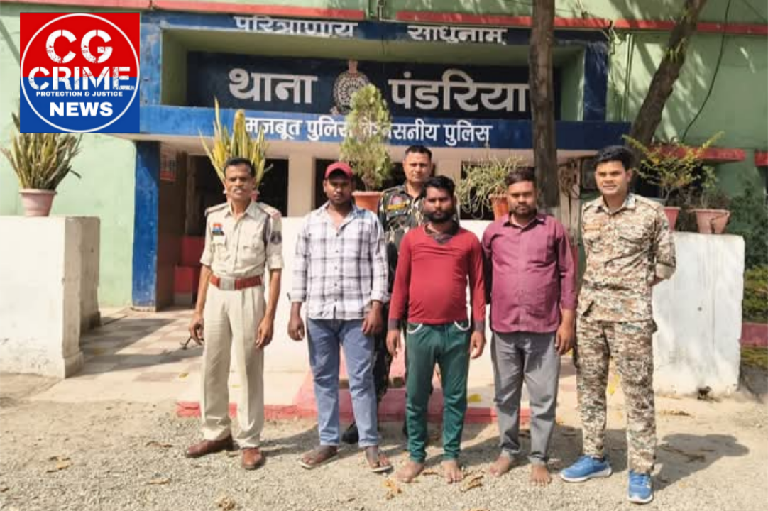 कवर्धा। जिले के थाना पंडरिया पुलिस को थाना क्षेत्रांतर्गत अपराध पर अंकुश लगाने श्रीमान पुलिस अधीक्षक महोदय कवर्धा श्री धमेद्र सिंह के द्वारा पंडरिया थाना क्षेत्रातंर्गत जुआ,सट्टा,आबकरी एवं अन्य आपराधिक गतिविधियो के विरूद्ध लगातार प्रभावी कार्यवाही करने हेतु निर्देशित किया गया था। जिसके परिपालन में अति.पुलिस अधी. श्री पुष्पेन्द्र सिंह बघेल (रापुसे) एंव अति.पुलिस अधी. श्री अमित पटेल (रापुसे) एवं पुलिस अनुविभागीय अधिकारी पण्डरिया श्री भूपत सिंह धनेश्री (रापुसे) के मार्गदर्शन में थाना पंडरिया द्वारा क्षेत्र में अपराधो पर अंकुश लगाने निर्देशित किया गया है ,कि थाना पंडरिया में दिनांक 08.03.2026 को मुखबीर सूचना पर थाना पंडरिया क्षेत्रांतर्गत ग्राम मोतिमपुर में आनंद बघेल के घर के सामने आम जगह पर ताश पत्ती से रूपये पैसे से हारजीत की बाजी लगाकर काट पत्ती नामक जुआ का खेल, खेल रहे है।