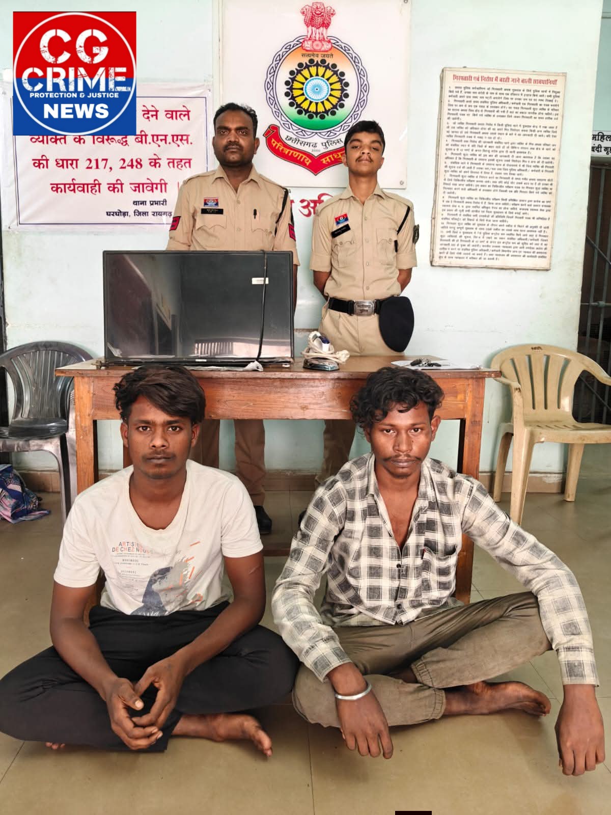 रायगढ़। जिले में संपत्ति संबंधी अपराधों पर प्रभावी अंकुश लगाने लगातार कार्यवाही की जा रही है। इसी क्रम में थाना घरघोड़ा पुलिस ने ग्राम टेरम में हुए मकान चोरी के मामले को 24 घंटे के भीतर सुलझाते हुए दो आरोपियों को गिरफ्तार कर चोरी गए सामान की बरामदगी की है। प्रकरण में प्रार्थी किशन लाल जोल्हे (29 वर्ष), निवासी ग्राम टेरम ने दिनांक 17 मार्च 2026 को थाना घरघोड़ा में रिपोर्ट दर्ज कराई कि वह अपने परिवार के साथ ईंट निर्माण कार्य के लिए गांव से बाहर गया था। इस दौरान दिनांक 08 से 10 फरवरी 2026 के बीच अज्ञात आरोपी द्वारा उसके मकान का दरवाजा तोड़कर अंदर रखे टीवी, आयरन, कांस के बर्तन एवं तांबे के पैसे सहित करीब 15,000 रुपये मूल्य के सामान चोरी कर लिए गए। रिपोर्ट पर अपराध क्रमांक 96/2026 धारा 331(4), 305(ए) बीएनएस के तहत मामला दर्ज कर विवेचना शुरू की गई।