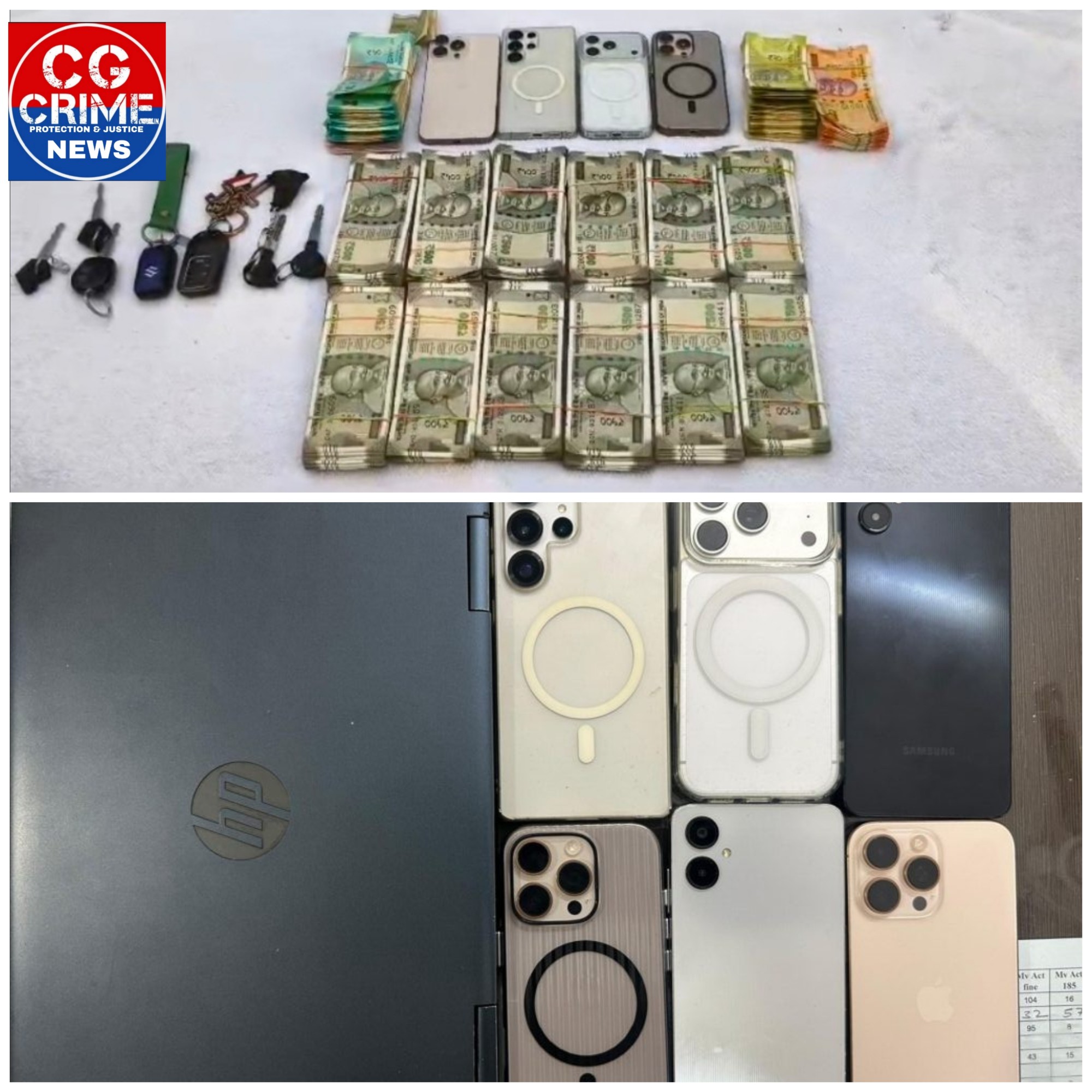 छापेमारी के दौरान पुलिस ने आरोपियों के कब्जे से करीब 6 लाख रुपये नगद, 3 लग्जरी कारें, 3 बाइक और 4 आईफोन जप्त किए हैं। जप्त किए गए मोबाइल फोन और अन्य इलेक्ट्रॉनिक उपकरणों में सट्टा कारोबार से जुड़े अहम सुराग मिलने की संभावना जताई जा रही है, जिससे इस पूरे नेटवर्क का खुलासा हो सकता है।