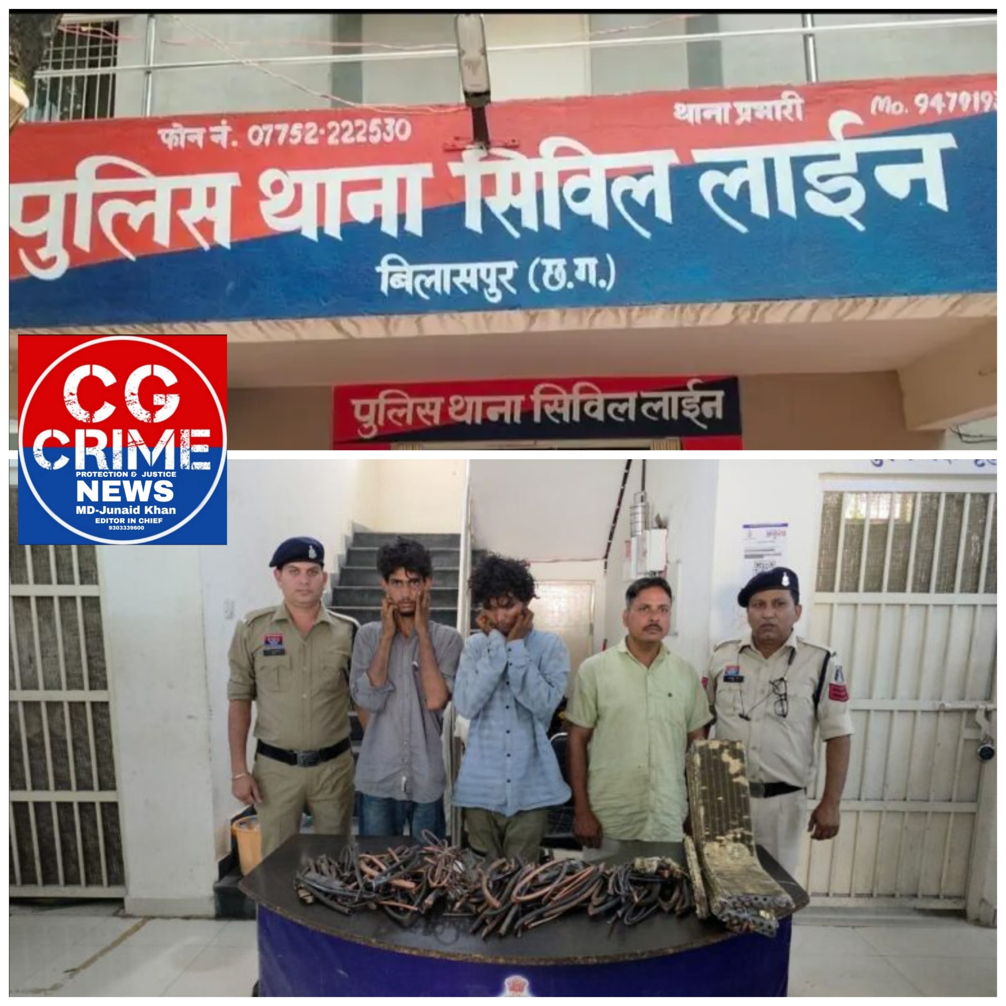 बिलासपुर। शहर के सिविल लाइन पुलिस द्वारा एसी कॉपर वायर चोरी करने वाले एवं खरीदार समेत 03 आरोपियों को गिरफ्तार किया है। जानकारी के अनुसार सिविल लाईन थाना क्षेत्र में लगातार हो रही एसी कॉपर वायर चोरी के प्रकरण में पुलिस ने कार्यवाही करते हुए दो शातिर चोर सूरज वस्त्रकार और धीरेन्द्र झारिया के साथ चोरी का माल खरीदने वाले कबाड़ी एहसान अली को गिरफ्तार कर लिया है। पुलिस ने आरोपियों के कब्जे से 80 फीट कॉपर वायर, एसी पार्ट्स और नगदी सहित कुल 48,500 रुपये का सामान बरामद किया है। पूछताछ में आरोपियों ने जिला अभियोजन कार्यालय और रजिस्ट्री ऑफिस परिसर से चोरी करना कबूल किया।