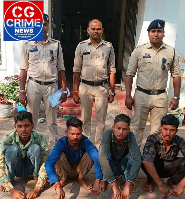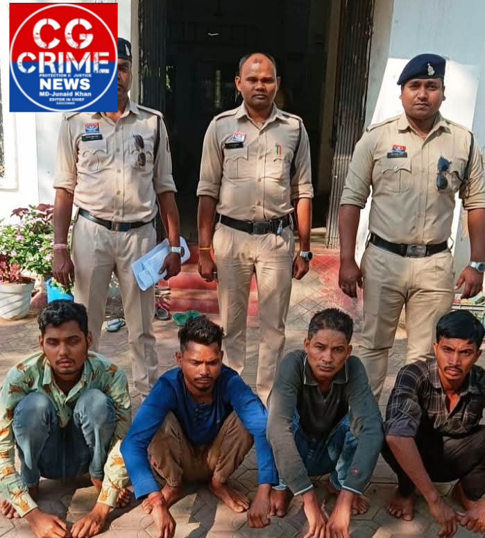 रायगढ़। वरिष्ठ पुलिस अधीक्षक श्री शशि मोहन सिंह के दिशा निर्देशन पर कोतवाली पुलिस ने बड़पारा शराब भट्ठी के पास युवक से मारपीट करने वाले आरोपियों के खिलाफ त्वरित कार्यवाही करते हुए चार आरोपियों को गिरफ्तार कर न्यायिक रिमांड पर भेज दिया है। जानकारी के अनुसार जूटमिल क्षेत्र निवासी सत्यम सिदार (31 वर्ष) ने 29 मार्च को थाना कोतवाली में रिपोर्ट दर्ज कराई कि वह अपने साथी के साथ बड़पारा शराब भट्ठी से लौट रहा था, तभी मिनीमाता चौक के पास रहने वाला मनोज सिंह अपने साथियों के साथ शराब के लिए पैसे मांगने लगा। मना करने पर सभी ने एकराय होकर गाली-गलौच करते हुए उसे पकड़कर जमीन पर गिरा दिया और हाथ, थप्पड़, मुक्का व लात से मारपीट की।
