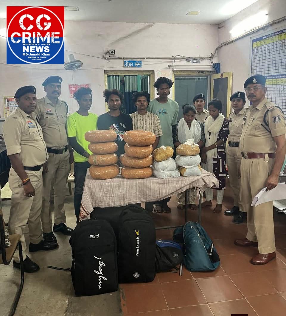 रायपुर। राजधानी। गांजा तस्करी करते उडीसा/म.प्र. का अंतर्राज्यीय तस्कर गिरोह के 04 पुरूष, 02 महिला एवं विधि के साथ संघर्षरत एक बालक सहित कुल 07 आरोपियों को गिरफ्तार किया है। जानकारी के अनुसार दिनांक 02.04.2026 को एण्टी क्राईम एण्ड साईबर यूनिट टीम को सूचना प्राप्त हुई कि थाना गंज क्षेत्रांतर्गत तेलघानी नाका चैक के पास कुछ महिला एवं पुरूष अपने बैग में गांजा रखें है तथा कहीं जाने की फिराक में है।