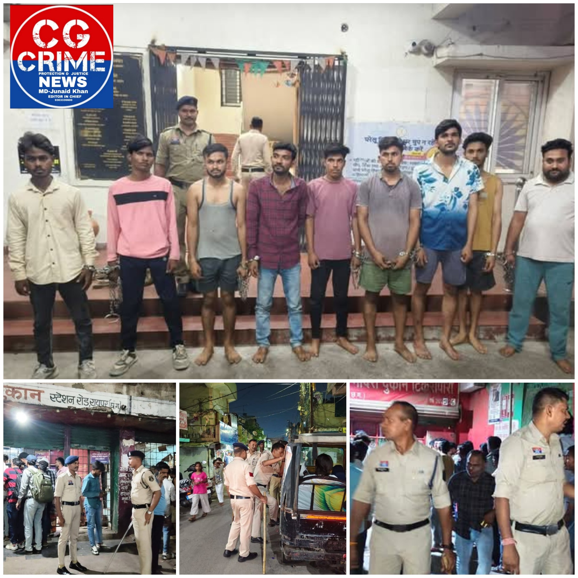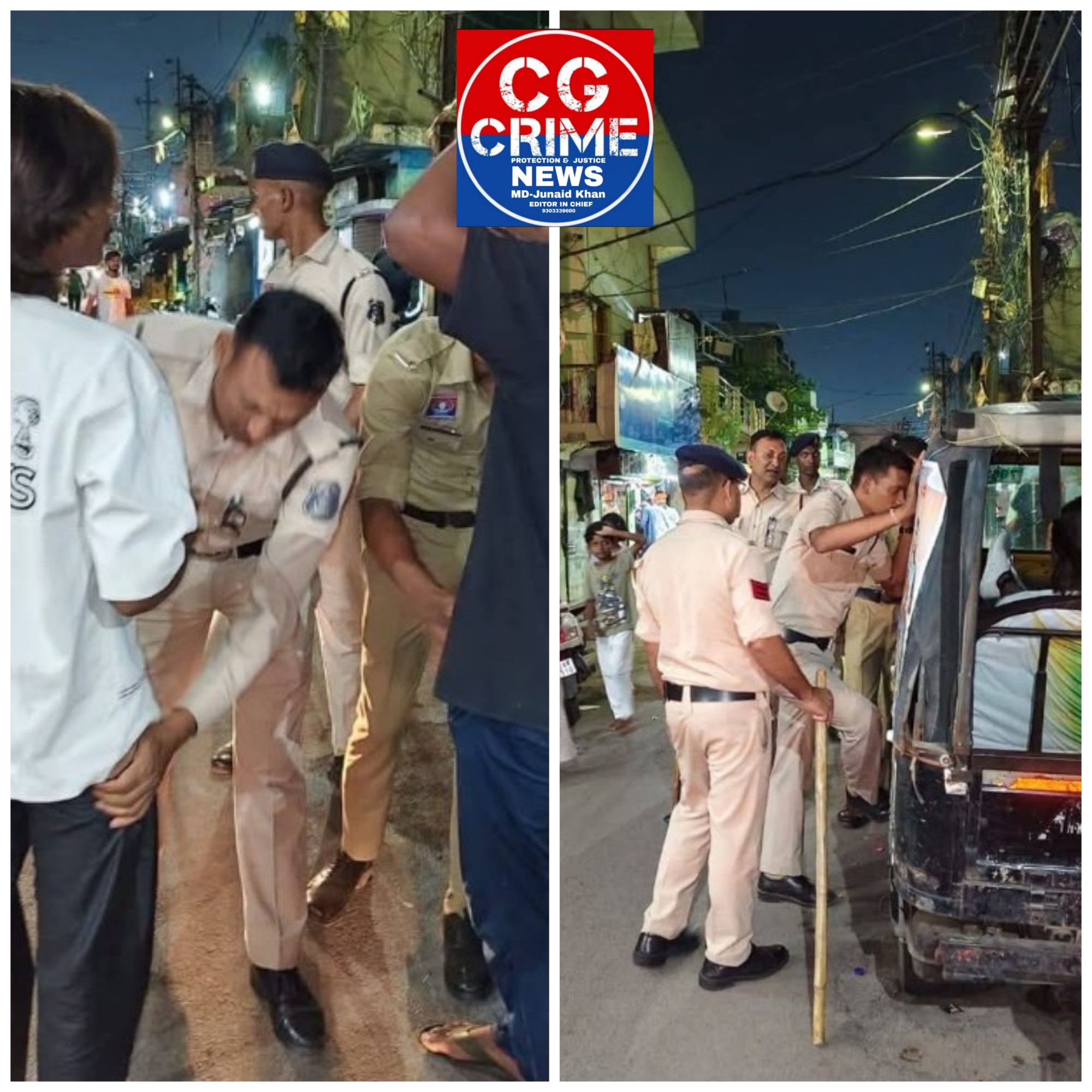 रायपुर। राजधानी। डीसीपी सेंट्रल ज़ोन के निर्देशन में कोतवाली डिवीजन क्षेत्र में सघन चेकिंग अभियान चलाया गया। अभियान के दौरान पूर्व में चिन्हांकित उपद्रव वाले स्थानों पर विशेष निगरानी रखते हुए शराब भट्ठियों एवं अहातों के आसपास सघन जांच की गई, जिससे असामाजिक तत्वों पर प्रभावी नियंत्रण स्थापित किया जा सके। चेकिंग के दौरान थाना गंज क्षेत्र अंतर्गत तेलघानी नाका के पास सार्वजनिक स्थान पर संदिग्ध गतिविधियों में लिप्त पाए जाने पर निम्नलिखित व्यक्तियों के विरुद्ध कार्यवाही की गई,