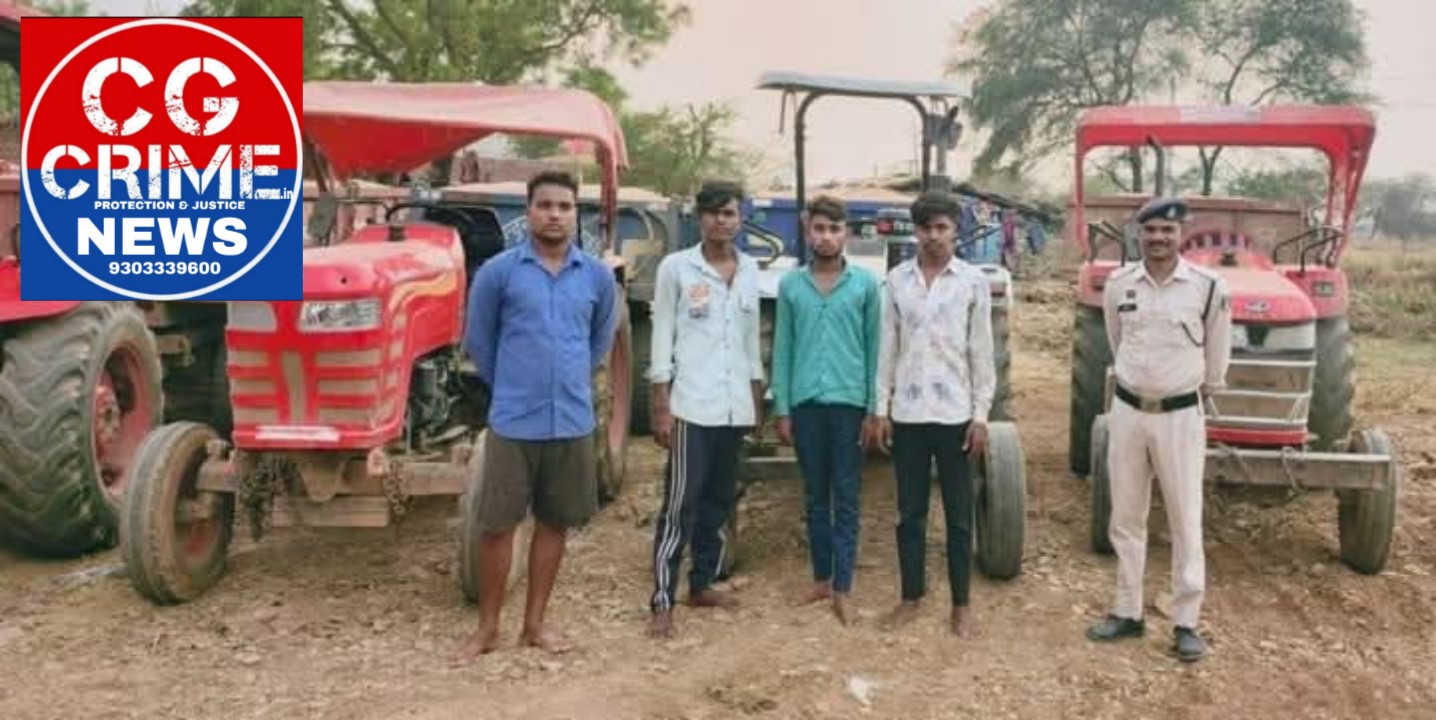 बलौदाबाजार। जिले के लवन थाना क्षेत्र में अवैध रूप से रेत उत्खनन कर, ट्रैक्टर के माध्यम से परिवहन करने वाले 04 आरोपियों को गिरफ्तार कर जेल भेज दिया है, जानकारी के अनुसार पुलिस को दिनांक 18.04.2026 को सूचना मिली कि कुछ ट्रैक्टर वाहन चालकों द्वारा तुरमा घाट से अवैध रूप से रेत उत्खनन कर ट्रैक्टर के माध्यम से परिवहन किया जा रहा है। सूचना पर पुलिस अधीक्षक श्रीमती भावना गुप्ता के कुशल निर्देशन पर थाना लवन पुलिस द्वारा मेनरोड लवन में घेराबंदी करते हुए 04 ट्रैक्टर को वाहन चालक सहित पकड़ा गया। पुलिस द्वारा सभी वाहन चालकों से विस्तृत पूछताछ किया गया, जिसमें उन सभी के द्वारा अवैध रूप से तुरमा घाट से रेत उत्खनन कर ट्रैक्टर के माध्यम से परिवहन करना स्वीकार किया गया।