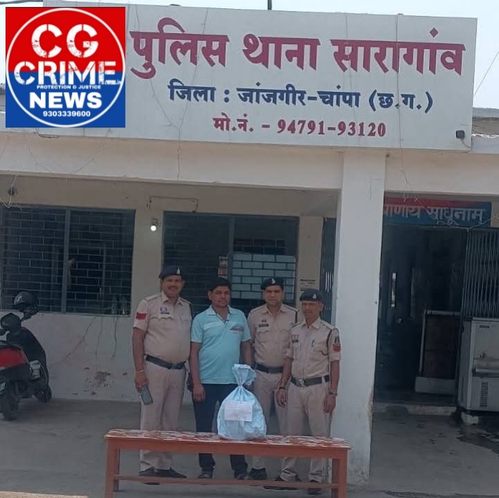 थाना सारागांव पुलिस द्वारा आरोपी रिखीराम कश्यप उम्र 44 निवासी चोरिया थाना सारागांव के कब्जे से 15 लीटर कच्ची महुआ शराब बरामद किया जाकर आरोपियों के विरुद्ध अपराध/धारा 34 (2) आबकारी एक्ट के तहत कार्यवाही करते हुए विधिवत गिरफ्तार कर न्यायिक रिमांड पर भेजा जा चुका है।