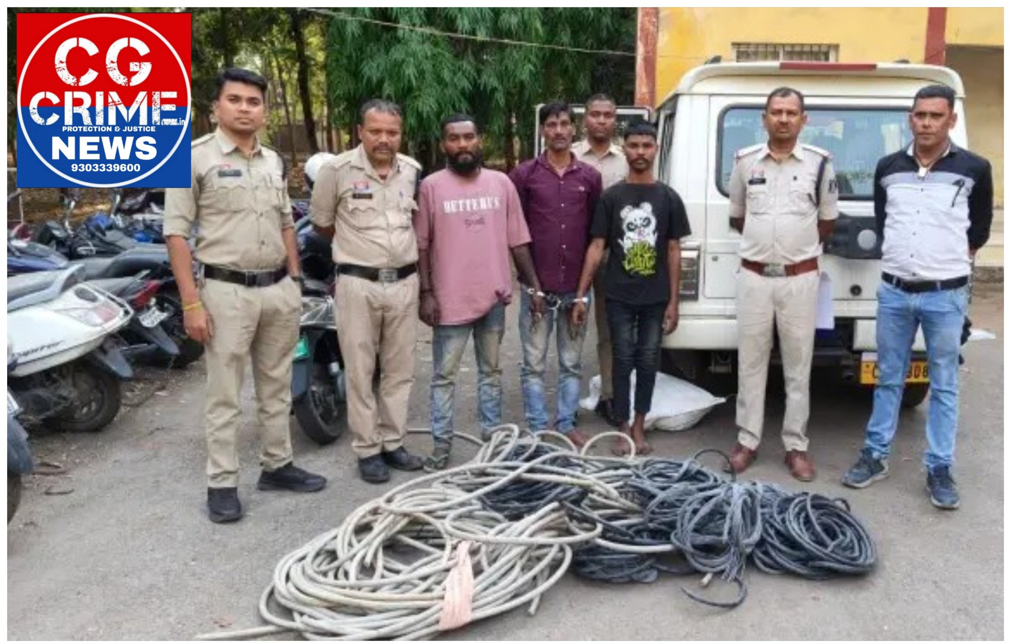 जांच के दौरान पुलिस टीम ने संदेह के आधार पर सुशील श्रीवास उर्फ ठाकुर (43 वर्ष), विशाल राव उर्फ लाली (22 वर्ष) और जान सिंह प्रधान (26 वर्ष) को हिरासत में लेकर पूछताछ की। पूछताछ में तीनों आरोपियों ने चोरी की वारदात को स्वीकार कर लिया। पकड़े गए आरोपियों के कब्जे से करीब 300 मीटर तांबे का केबल वायर, जिसकी अनुमानित कीमत लगभग 75 हजार रुपये है, बरआमद कर आरोपियों को न्यायिक रिमांड पर भेज दिया है। मामले में दो अन्य आरोपी किशन कुमार गोंड़ उर्फ गोलू और एक अन्य आरोपी फरार हैं, जिनकी तलाश जारी है।